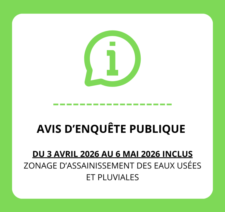 En application des dispositions de l’arrêté de Monsieur le Maire de SEVERAC D’AVEYRON, le zonage d’assainissement des eaux usées et pluviales sera soumis à l’enquête publique durant 34 jours du 3 avril 2026 au 6 mai 2026 inclus, M Jean-Marie MAUREL assumera les fonctions de Commissaire Enquêteur. Pendant le délai susvisé : – Un dossier sera […]
