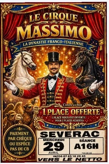 Venez découvrir le Cirque Massimo à Sévérac d’Aveyron. Au programme des jongleurs, des acrobates, des clowns, des équilibristes et bien d’autres. L’occasion aussi de voir des chevaux, lamas et ânes.